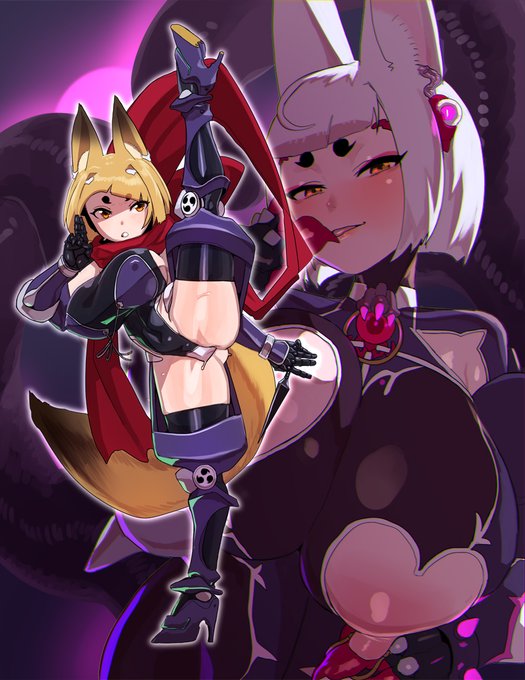 ハチナ怪異譚/八角家 https://t.co/OWFDV7ewXj #DLsite ハチナちゃん発売記念に描きましたです~ 本編だとほとんど無表情な子ですが笑わせてみました~・・・(エッチな攻撃で衣装が変化しちゃって黒ラバーになるのがエロイんすよねぇ) (3枚目4枚目は過去に描いた絵です)