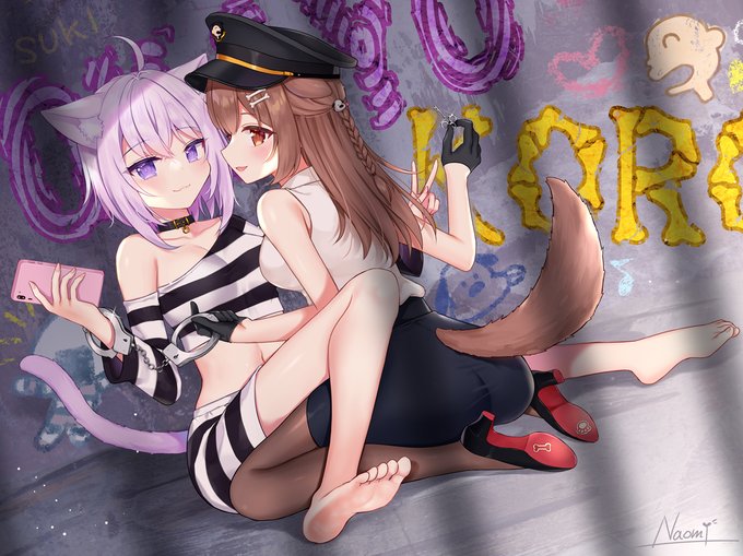 Tシャツ姿のチグサとアルバイト姿のアクアに乳を支えてもらいました。 写真:怜かなでさん(@RenKana0904)