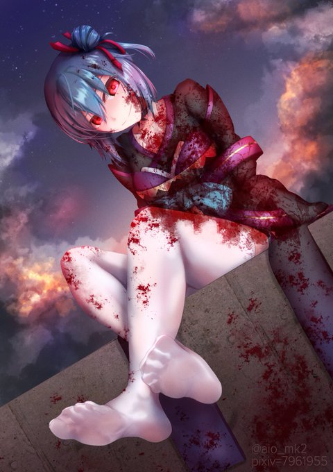 顔に血がついた