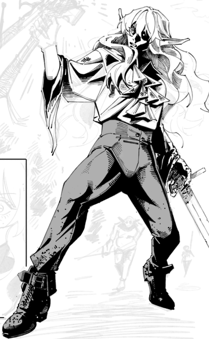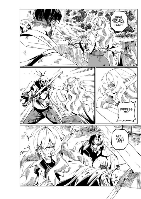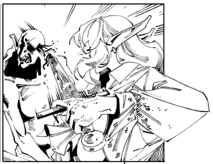 uses the cross guard to parry while the blade pointing at the enemy isn't she a genius? maybe a century of fighting humans paid off