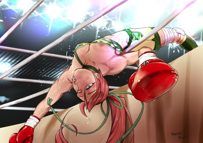 スパーリングしている内に気持ちが昂ぶって、ヘッドギアを外し「ナマで顔面殴り合おうよ🎶」とおかしなことを言い出したボクシング女子を描きました(^-^) https://t.co/nd0EvP81sW