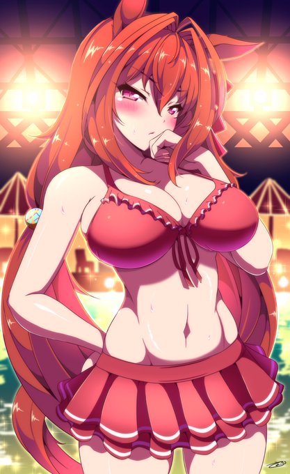 #ウマ娘 skebで描きましたトレピに水着を披露するダイタクヘリオスです