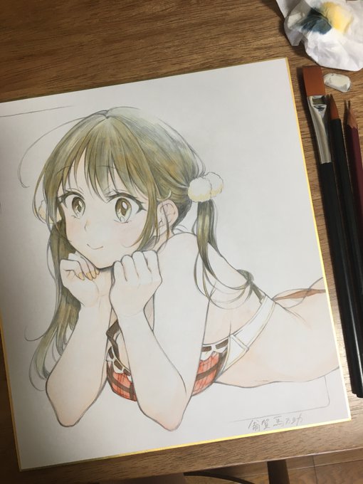 右目のリハビリがてらか小作に彩色してみました。 拙作『濡桔梗』より 津守更沙さんと佐藤遥香さんです。