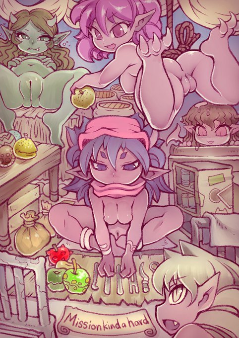 アンケの結果で描いたエル/マ嬢のふたなりデブ狸化です 上空に退避して結界張ったはいいけど、チューブ通され食欲に負けて薬液飲んだらこうなったみたいな 後でフル解像度版と駄文無し版渋に上げておきます
