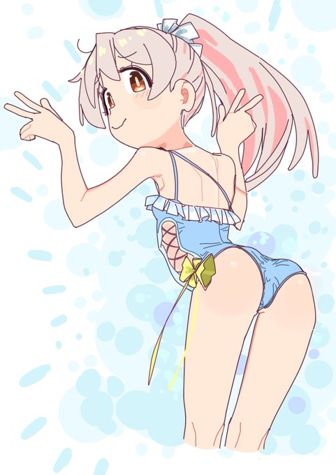 夏コミの浴衣競泳水着ニーソブーツシロコ本のラフです。嘘です。