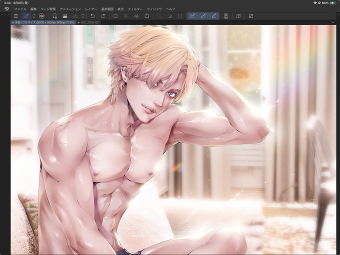 イケメン描くの一番楽しいナ。 あとは髪とパンツの塗り、そして調整!