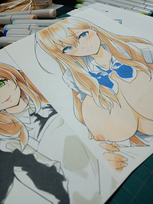 色鉛筆も練習したけどコピックよりはマシか🤤😹色の調整しやすいからね