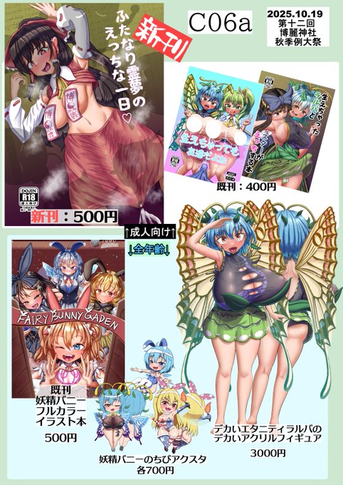 ということで紅楼夢新刊宣伝しときます! マイクロビキニ本ドレミー編です。マイクロビキニドレミーさんがサグメ様といちゃいちゃする本です。 ムチムチ…♡ 紅楼夢M13bでお待ちしております…秋例はE5aにょ♡ 性器修正審査通れ~~~~~(不安