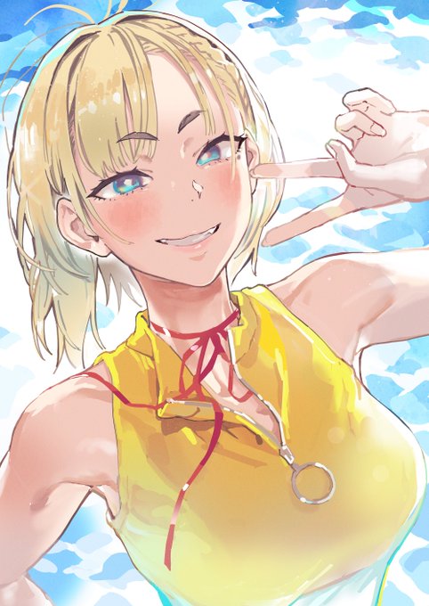 おもむろにアマ女水着コロちゃん (水着はえらんと先生の絵を参考にさせていただきました) #アリスギアお絵かき