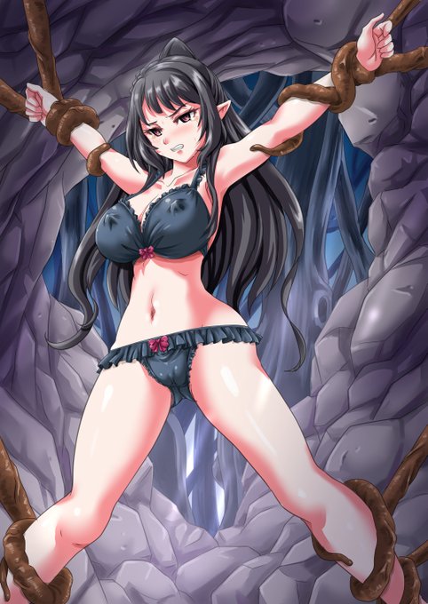 心のままにえっち絵を描きました。 師匠である神威さんなら弟子が助けに来るまで屈強な精神力で触手に屈するはずがないよね…。 「…趣味が悪いですね。このようなものでわたくしが屈するとでも?」