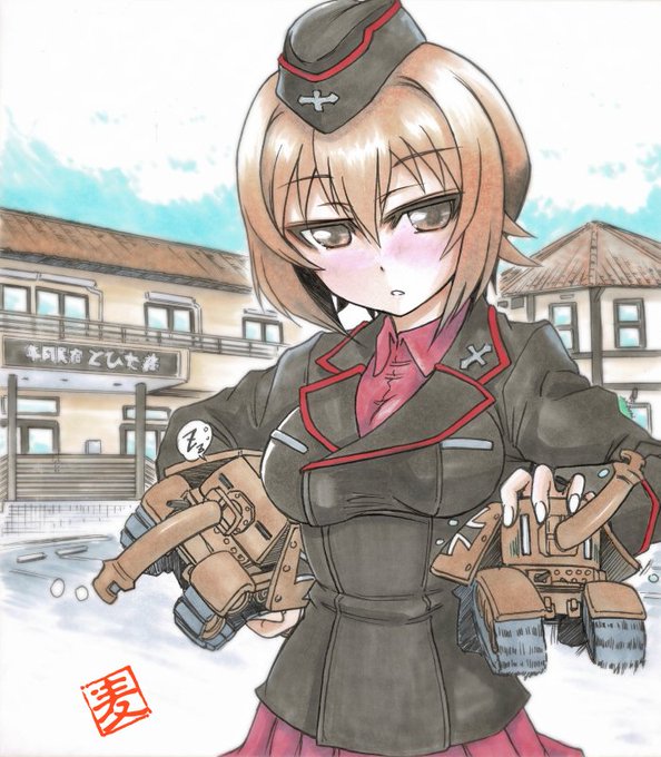 聖グロ愛里寿ちゃんを描きました!早く市庁舎にパネル置いて!! 私はたいへん察しが悪いので、ハンドサインのシーンが出ても「何でダーさん愛里寿ちゃんみたいな事してるの…?」と思ってました(笑) #garupan #ガルパン