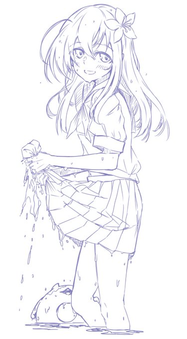 ひんぬーろりっこちゃん 真夏のぐっしょり透けブラセーラー☺️ 夏!という感じのイラスト大好きなのでたくさん美少女を描きたいね!