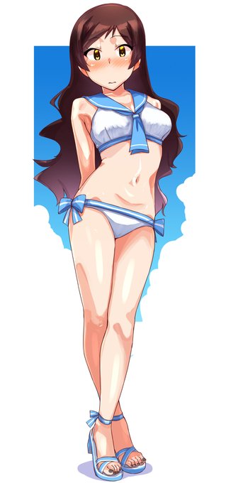 シンプルな競泳水着が正解かと思いながらもセクシービキニを選んだP... でもこれくらいなら 恥ずかしがらないかと思って #ミリシタ #百瀬莉緒