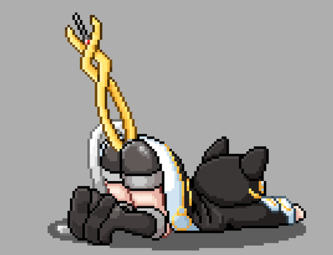 ラヴィの戦闘ドットうっていたのですけれど 途中で、どうしてもふて寝してスマホいじってる姿にしか見えなくなりましたの・・・・ #pixelart #RPGmakerMV