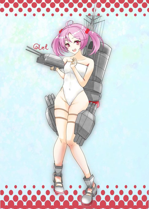 暑い日が続いて思わず描いた水着娘 親潮、黒潮と久しぶりに陽炎さん
