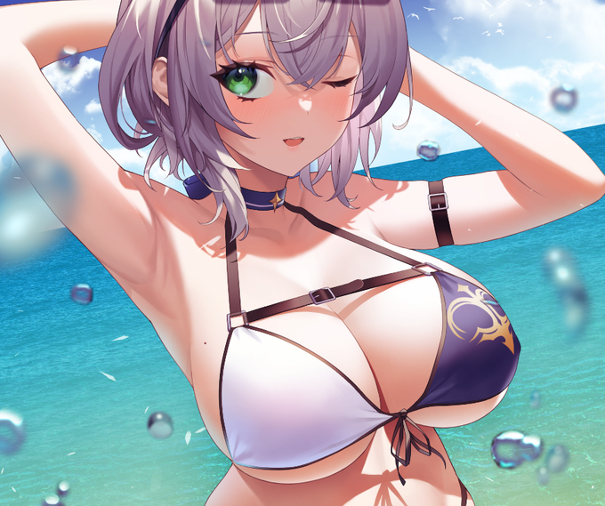 夏なのでビキニトップを描きたかった! 熱いのだ…けどこういうHotなお姉さんは大好きなんだ OC_オズヴェル