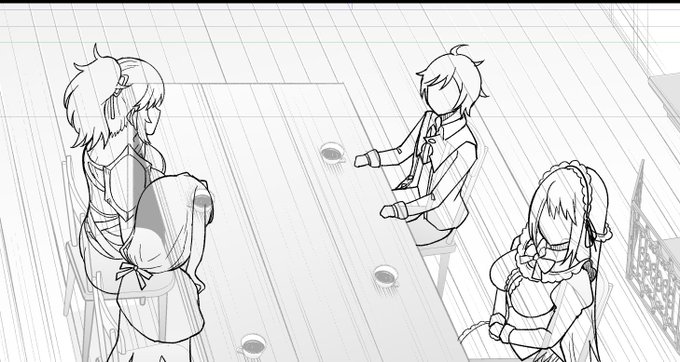 非常にめんどいコマのネームと下描きとペン入れ 今回はこういうコマが多い