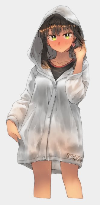 ラッシュガードの前が閉まらない娘描きなおした
