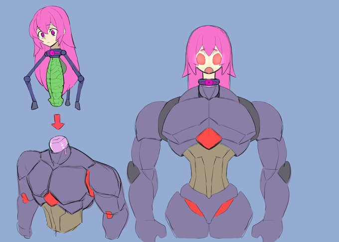 ようやくできた~(去年から残ってた線画 エルエちゃんと戦闘ボディ