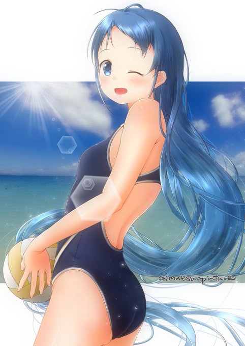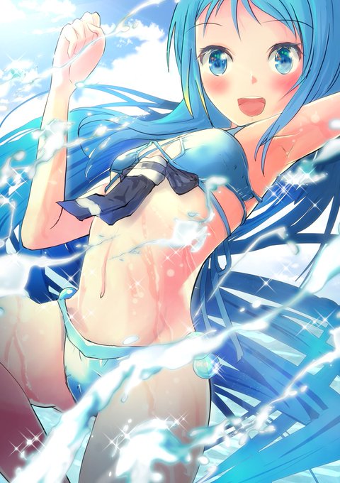 水着狭霧ちゃんです。 青い海、青い空。白い水着に白い柔肌の君。