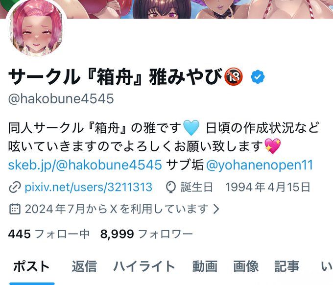 同人サークル『箱舟』の雅です🩵 日頃の作成状況など呟いていきます💖 https://t.co/hwGdjxYI0Y サブ垢@yohanenopen11 干し芋https://t.co/Ce1MMeOyKK