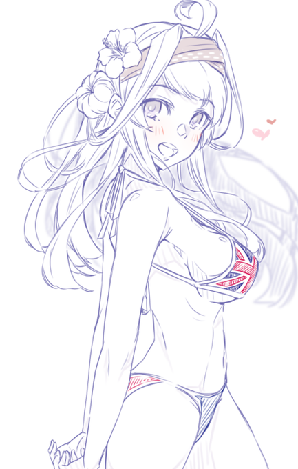 水着流されてることにまだ気付いてないXXちゃん #暑いので水着絵で体温調節する
