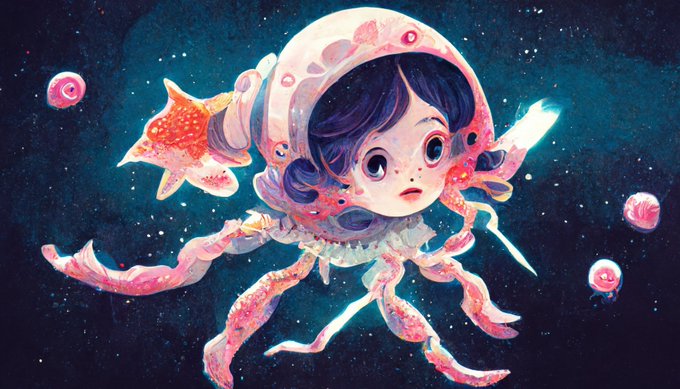 宇宙深海魚と戦うコズミック魔法少女って指定してるのになぜかどこで区切っても合体させてくる #midjourney くん