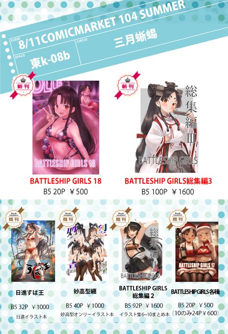 9/24に行われる軍令部酒保に参加します!最上のカラーイラスト小冊子になります。今回描き下ろしたのと過去のイラストを何点かまとめました。一応成人向け8p200円、その他モノクロ色紙など。会場のみ。スペース「I-24」です。よろしくお願いします!