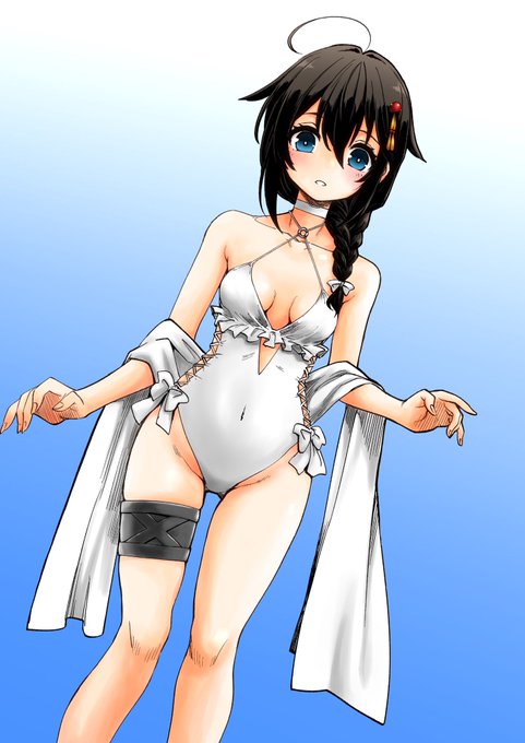 絵594号「イクシャちゃん」 白スクノエルちゃんの電波と同時に受信したスク水イクシャちゃん(食い込み直し)です。 #AliceinCradle