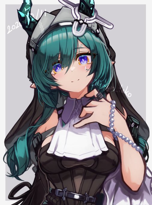 お茶の前さん(@Dionaea_mae_t)のところの翡翠ちゃん。 何年も前から描きたいと思っていたところに新衣装?が来たので